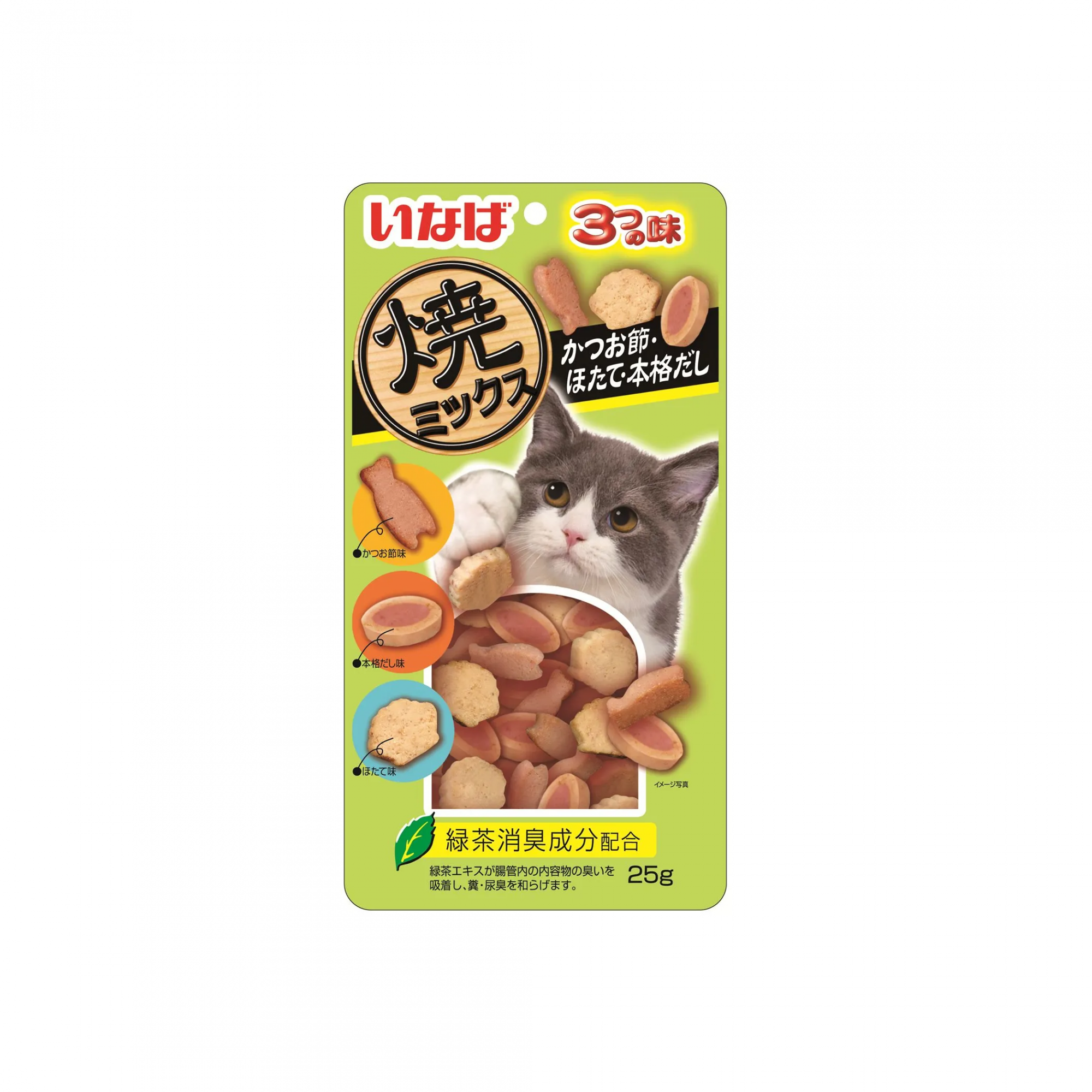 INABA Yakimiksu лакомство запеченное для кошек ассорти с кацуобуси, морским гребешком и бульоном 25г