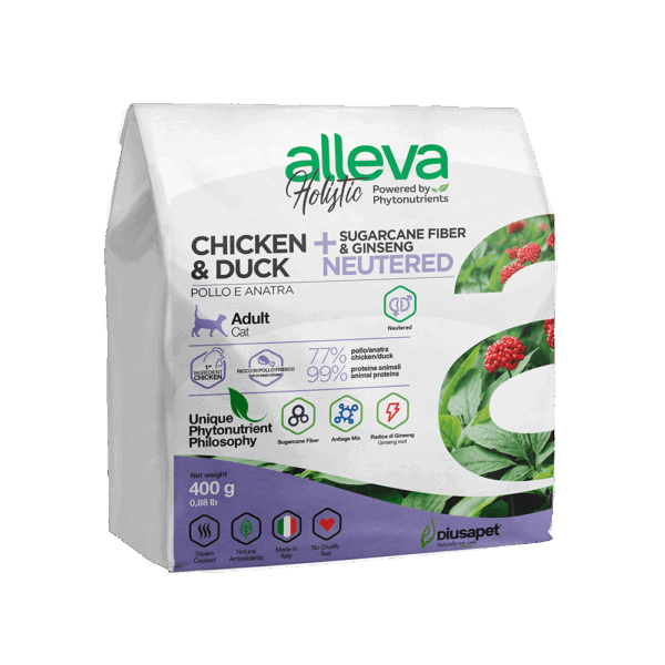 Alleva Holistic Курица, Утка, Волокна сахарного тростника и Женьшень Neutered