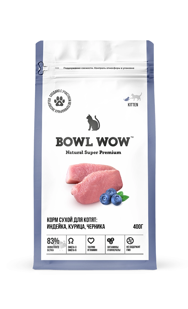 Bowl Wow Сухой корм для котят, с индейкой, курицей и черникой