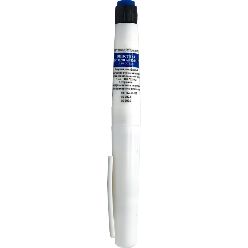 ВИНСУВЕТ микс 30/70 ANIMALPEN применяют собакам для лечения сахарного диабета, требующего инсулинотерапии.Применение при беременности и кормлении грудью
