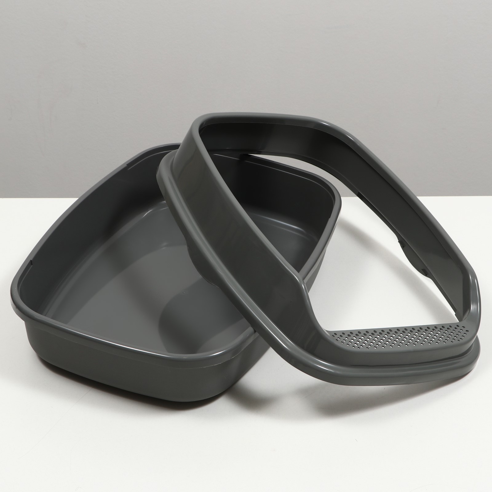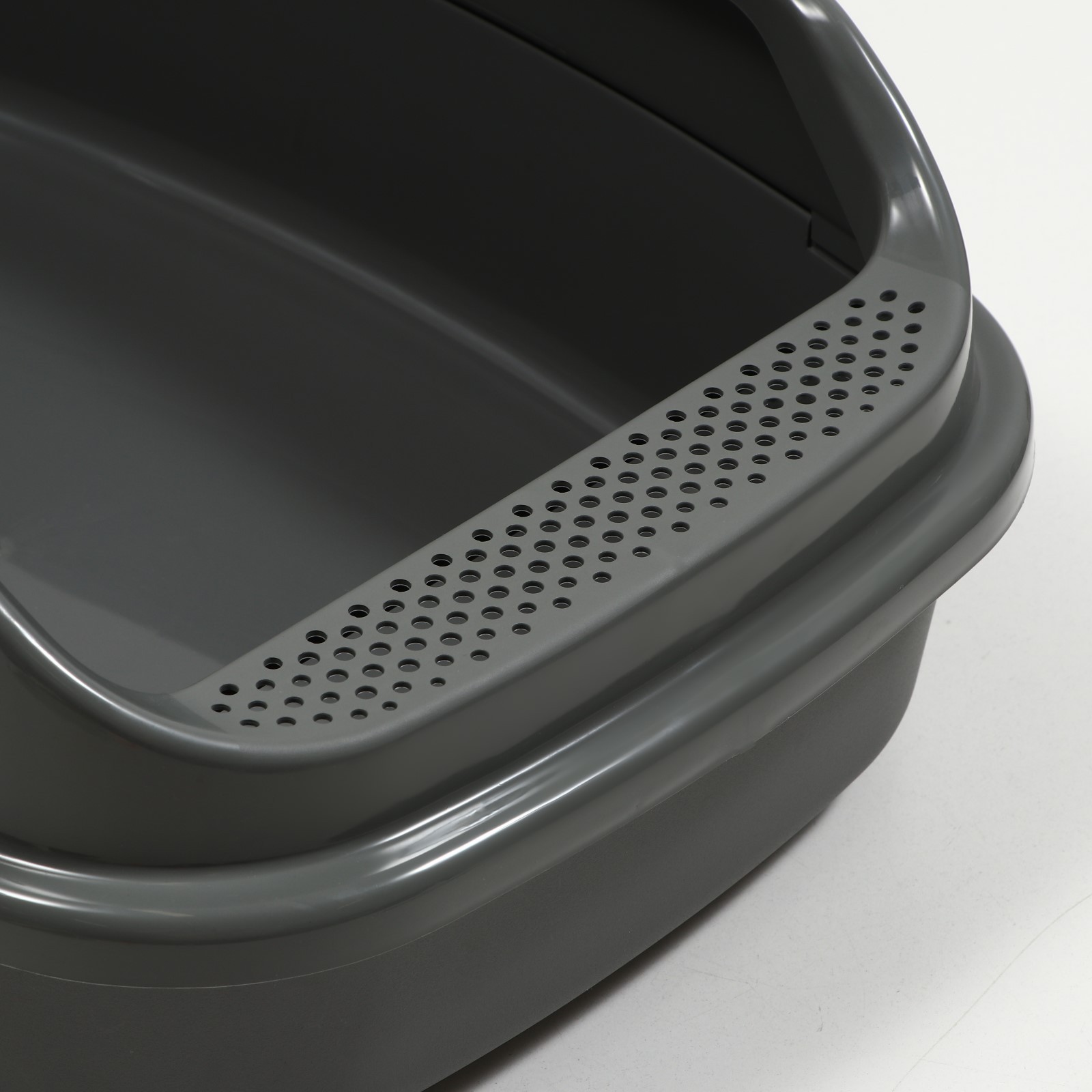 Лоток для кошки имеет современную и эргономичную форму, не имеющую острых углов.