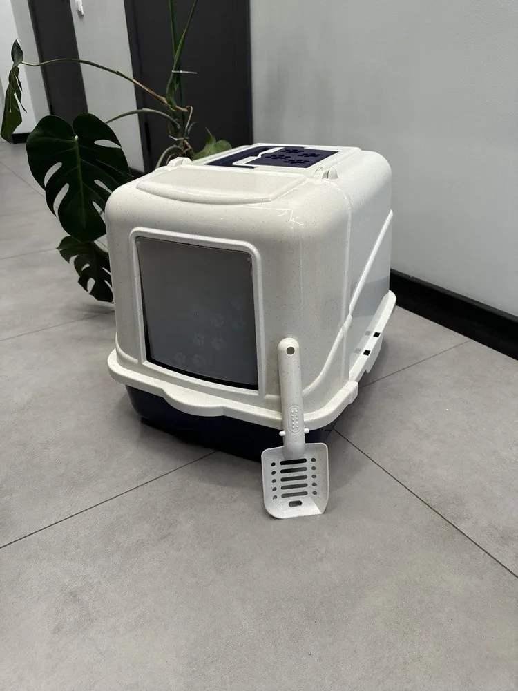 Чистый котик Закрытый туалет для кошек с фильтром, синий, 50х40х41см