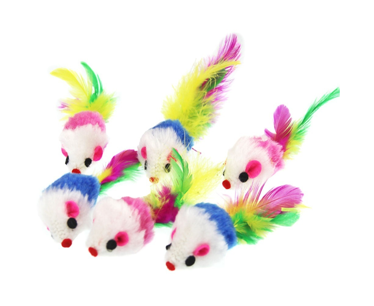 Сибирская Кошка Игрушка для кошек мышь с хвостом из перьев 1шт