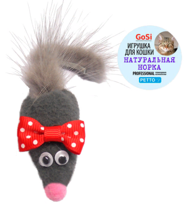 Игрушка для кошки с натуральной норкой, выполнена в виде мышки с коротким мехом. Чрезвычайно прочная и долговечная игрушка. Этикетка кружок.
