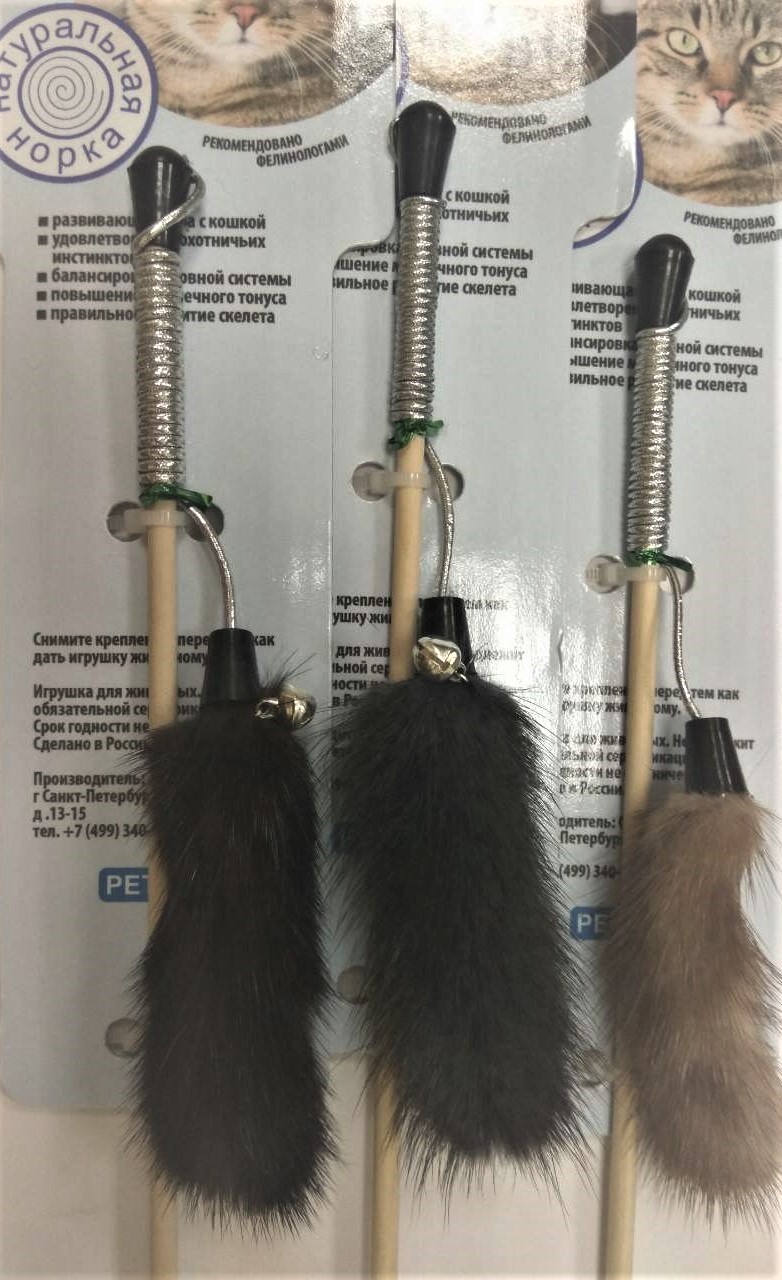 Отличная игрушка-удочка из дерева и натурального меха норки. Привлечет питомца к активной игре. На резинке, хорошо пружинит и отскакивает. Палочка выполнена из натурального дерева. Цвета в ассортименте.