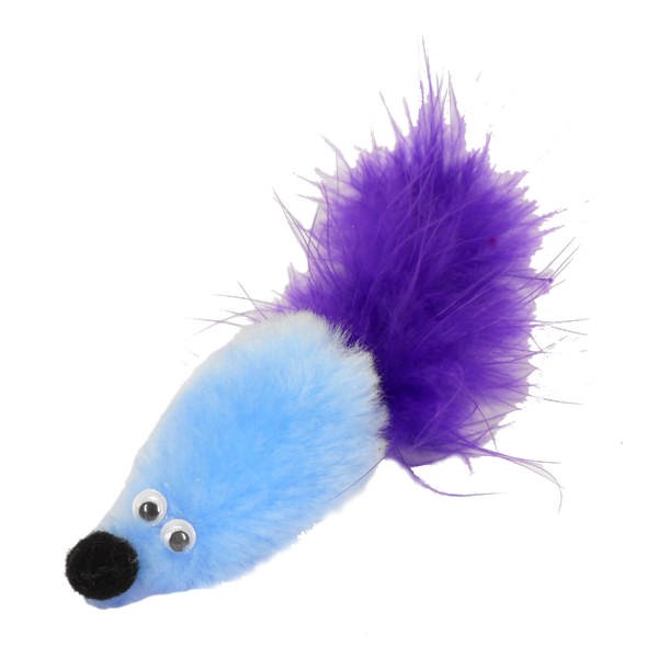 GoSi Игрушка для кошек мышь с кошачьей мятой, хвост перо марабу, голубая