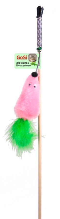 GoSi Махалка-удочка мышь с кошачьей мятой, хвост-перо марабу, розовая