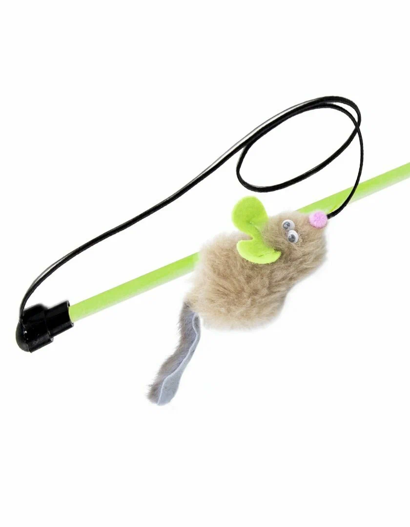 GoSi Удочка-дразнилка для кошек neon мышка-Мелисса с мятой и норковым хвостом, 30см