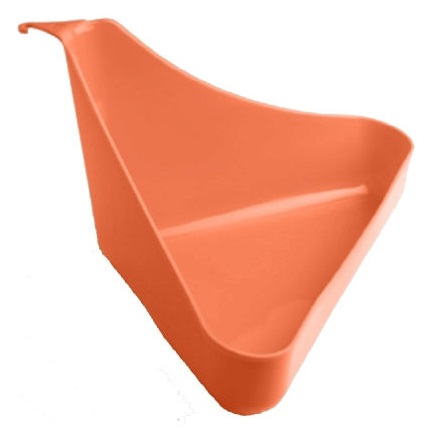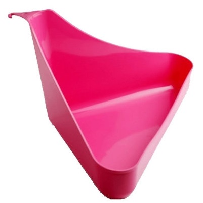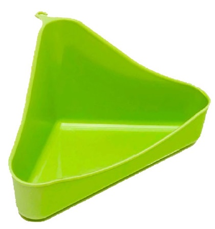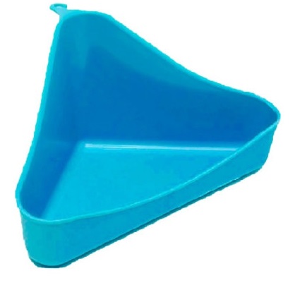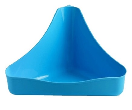 Удобная форма позволяет установить туалет в угол клетки, что позволяет сэкономить место. Высокие бортики защищают пространство вокруг клетки от лишнего мусора.