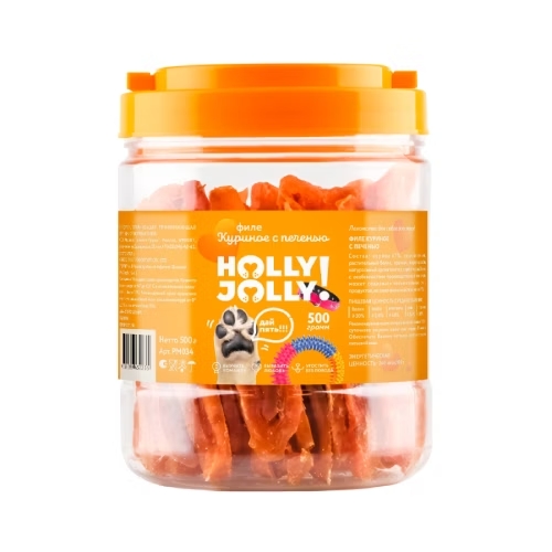 Holly Jolly! Лакомство для собак филе куриное с печенью, банка, 500гр