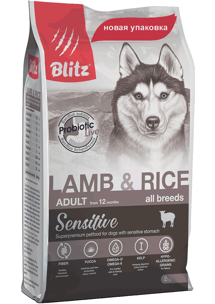 Комплексный сухой корм Blitz Adult Lamb & Rice All Breeds, с ягнёнком и рисом, создан для взрослых собак всех пород, которые по тем или иным причинам обладают чувствительным пищеварением, не переносят частотные животные белки (курицу или говядину) и склонны к пищевым аллергиям.
