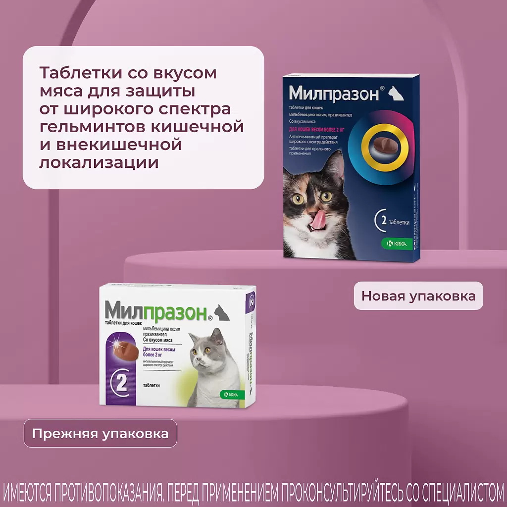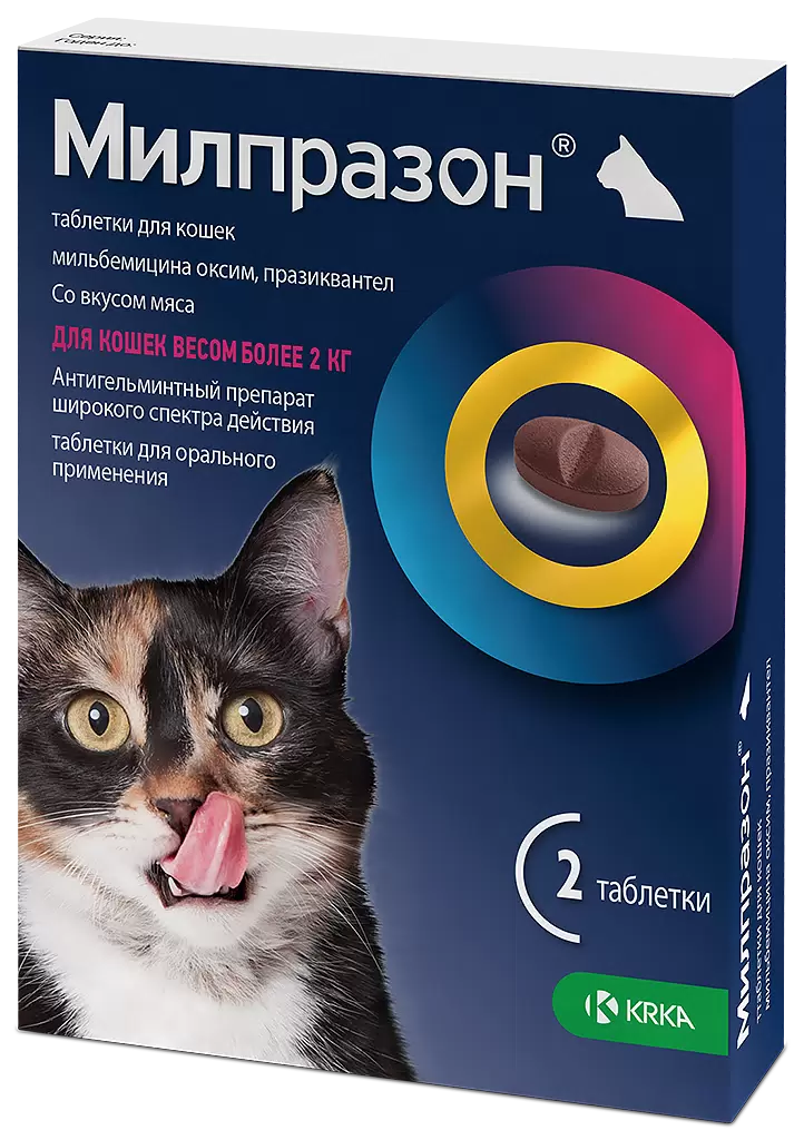 для кошек весом более 2 кг (коричнево-красные таблетки с содержанием мильбемицина оксима 16 мг и празиквантела 40 мг) |