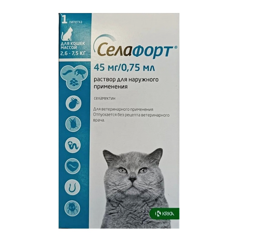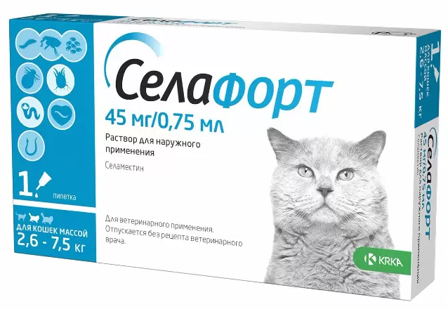 KRKA Селафорт для кошек 6% 0,75мл (45мг для кошек 2,6-7,5 кг)