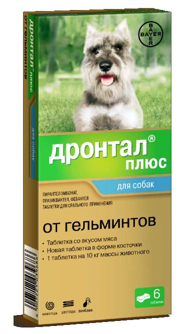 Дронтал плюс № 6 таблетки для собак со вкусом мяса, 6 шт