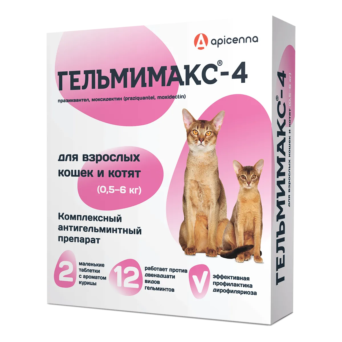 Гельмимакс-4 таблетки 120 мг для котят и взрослых кошек, 2шт