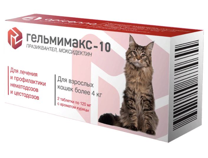 Гельмимакс-10 таблетки 120 мг для взрослых кошек более 4 кг, 2 шт