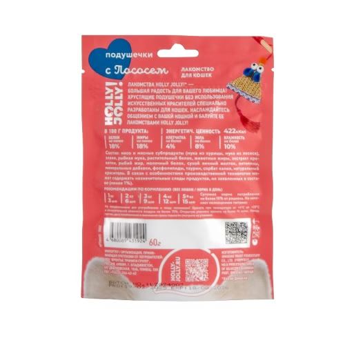 Holly Jolly! Лакомство для кошек подушечки с лососем 60г