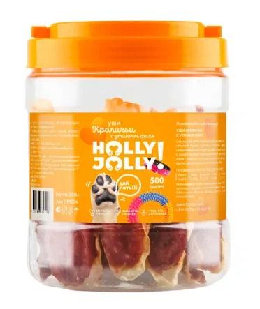 Holly Jolly! Лакомство для собак уши кроличьи с утиным филе, банка, 500гр