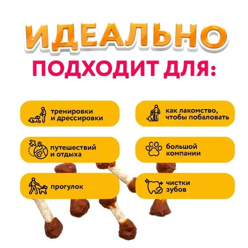Забавные гантельки из натуральной курицы – веселое и полезное лакомство для вашего питомца! Удобная форма идеально подходит для тренировок и обучения командам, превращая дрессировку в увлекательную игру. Нежное куриное мясо богато белком, который необходим для поддержания активности и мышечного тонуса собаки. Без искусственных добавок и красителей – только натуральные ингредиенты для здоровья вашего любимца.