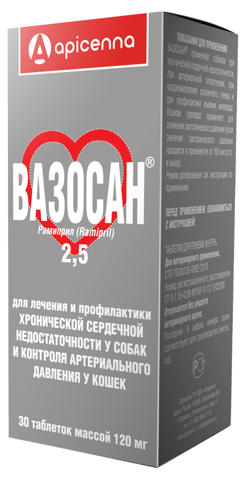 Вазосан Таблетки для собак и кошек, 2,5 мг, 30 таб